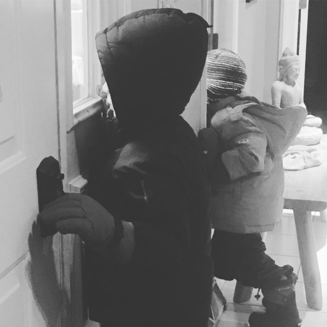 Picked up Em and then did what the Pilgrims do…went to hunt down our T-giving feast. Ok, so it was really a can of pumpkin, corn and fruit but Ollie was entertained for 45 minutes of hide and seek and hot and cold.