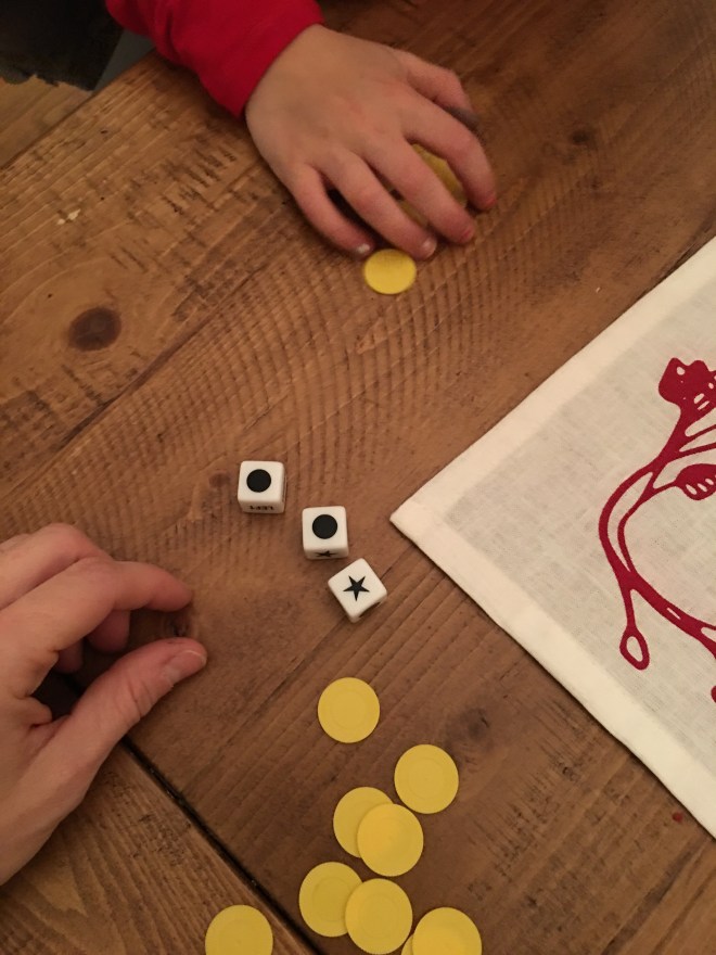 Friends a then dinner. This week, hoping to inspire quiet activities, we have been playing games. Tonight Sam taught the kids poker. And they caught on right away! O was the big winner.