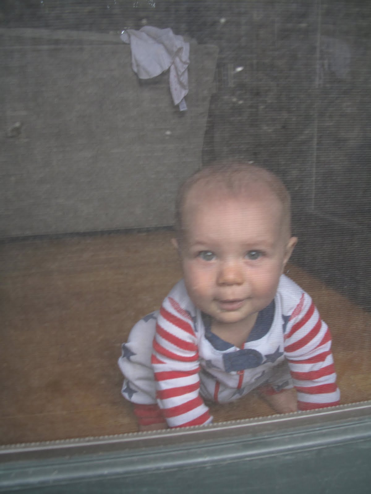 | We were told that if our child was on the playground, he would need to have shoes. Sadly, Ollie owns no shoes. Poor baby. |