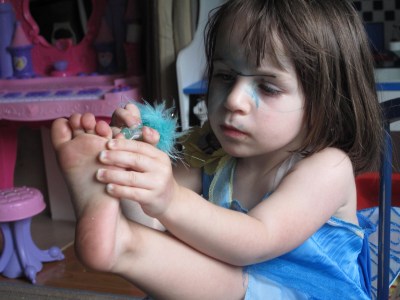 Her dream: “At Gramma and Grampa’s and there were doggies and those doggies were biting elephants and me. The doggies were blue. Something caught my neck in the museum and it was warm. And it was Dada’s fault. The elephants had boots and they had crowns, too. The purple elephant had a doogie face, a mask and it was scary.”