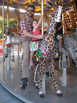 Lily was much more interested in the playground and petting zoo than the rides. We tried only two rides–the Dragon Train, of course, and the carousel. She had ambitions of going on the roller coaster but changed her mind while standing in line. There’s always next time, Lily!