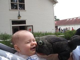 Ollie met this froggy while he was hanging around on Mommy.