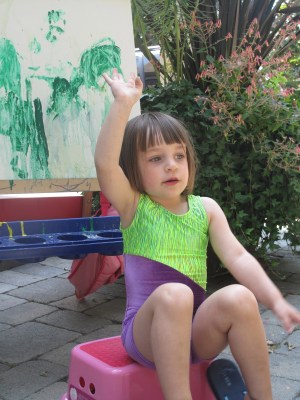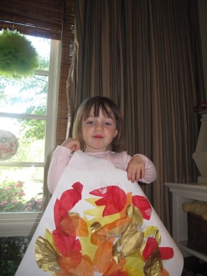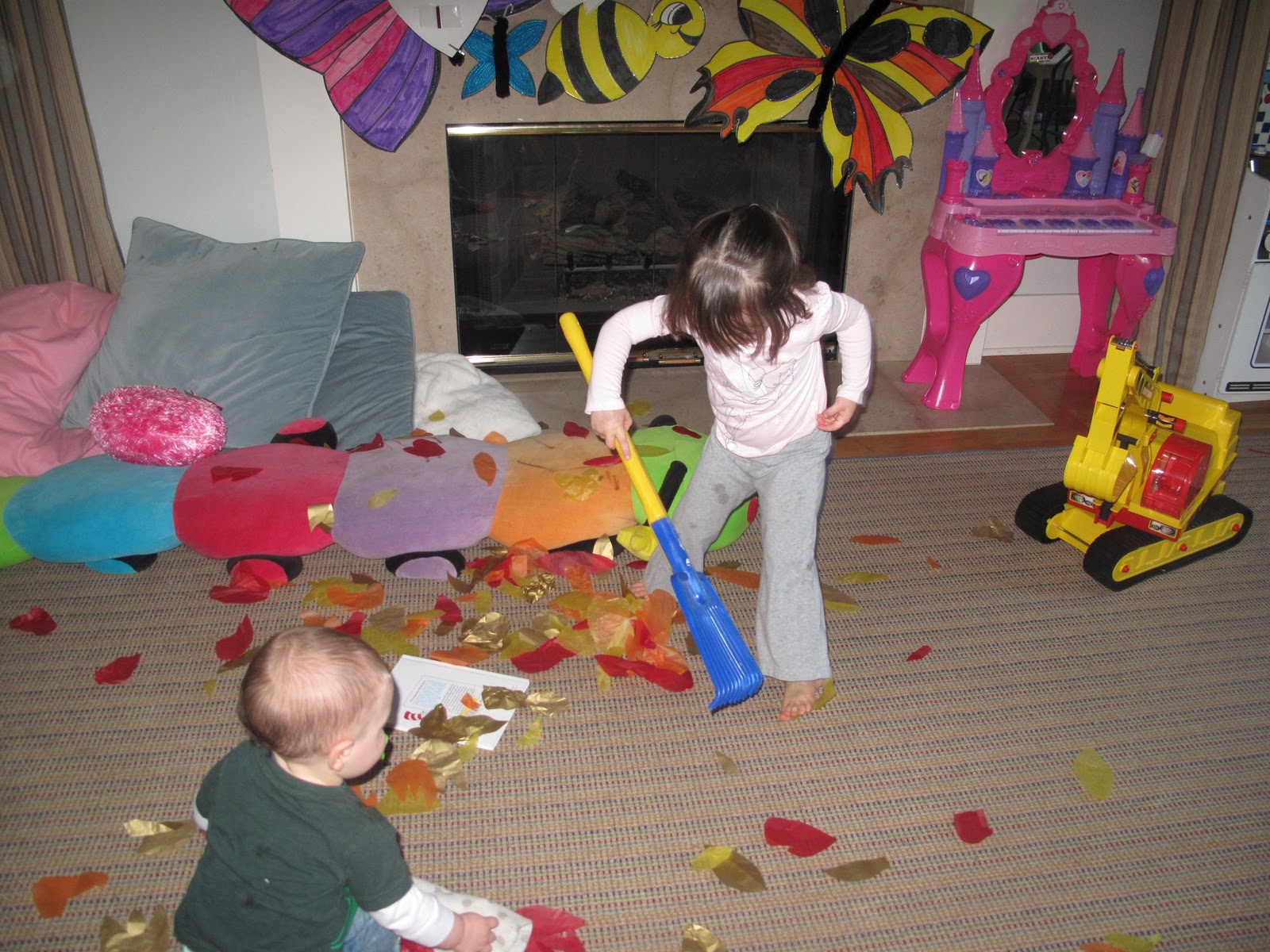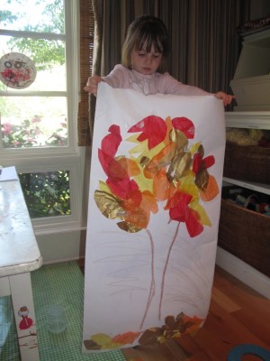 | Raking up our tissue paper leaves |