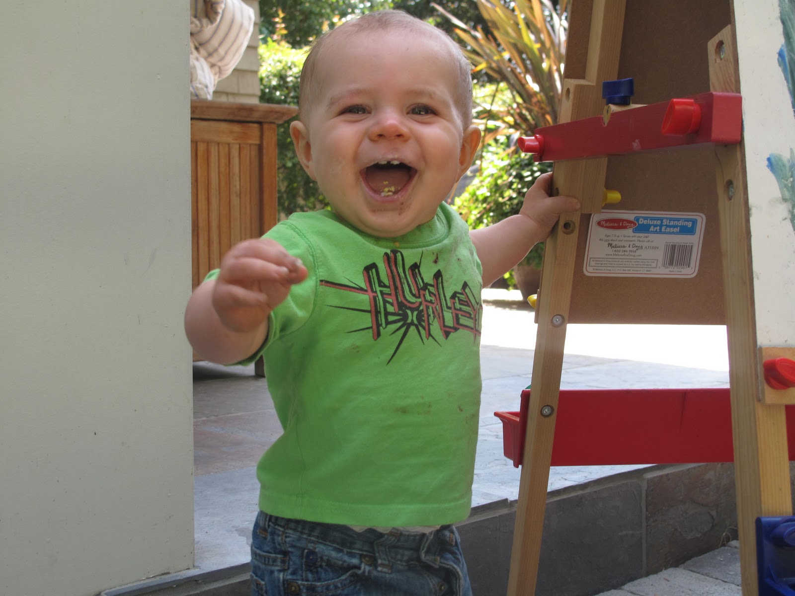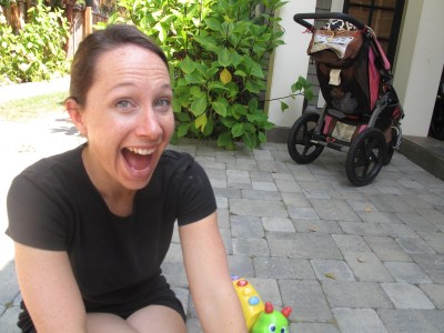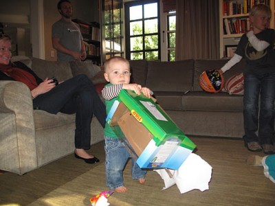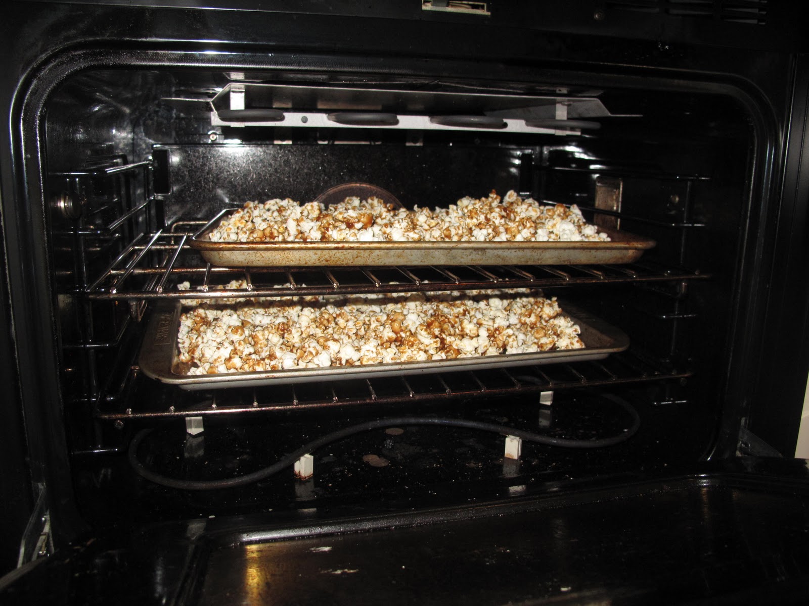 Later that day we made some caramel popcorn. Only that evening did I learn that Sam doesn’t like caramel. That’s kind of great but kind of awful, too. I guess I have to be in charge of making sure it all gets eaten 🙂 And after that, we went to the woods and collected building materials for a fairy house. While we were in the woods, Ollie got to meet a new puppy–an 8 month old Golden named Lucky–and I am afraid we may have to continue to be a dog family. He loves them! Maggie is being fairly patient with him; O gets a tremendous kick out of trying to catch her.