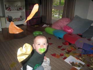 | Since not many leaves fall here, we made our own fall fun! |