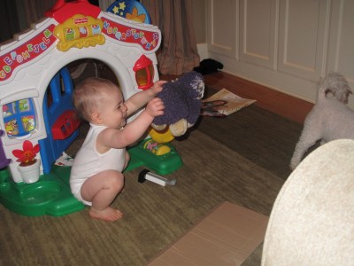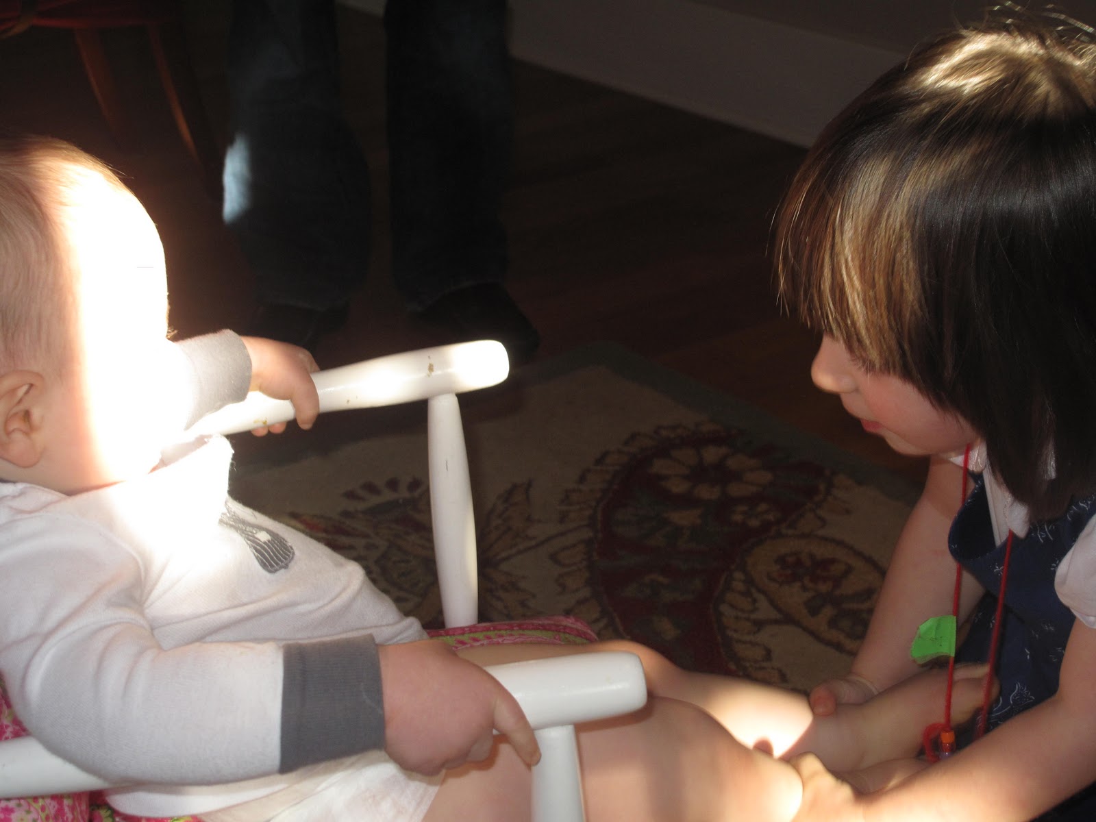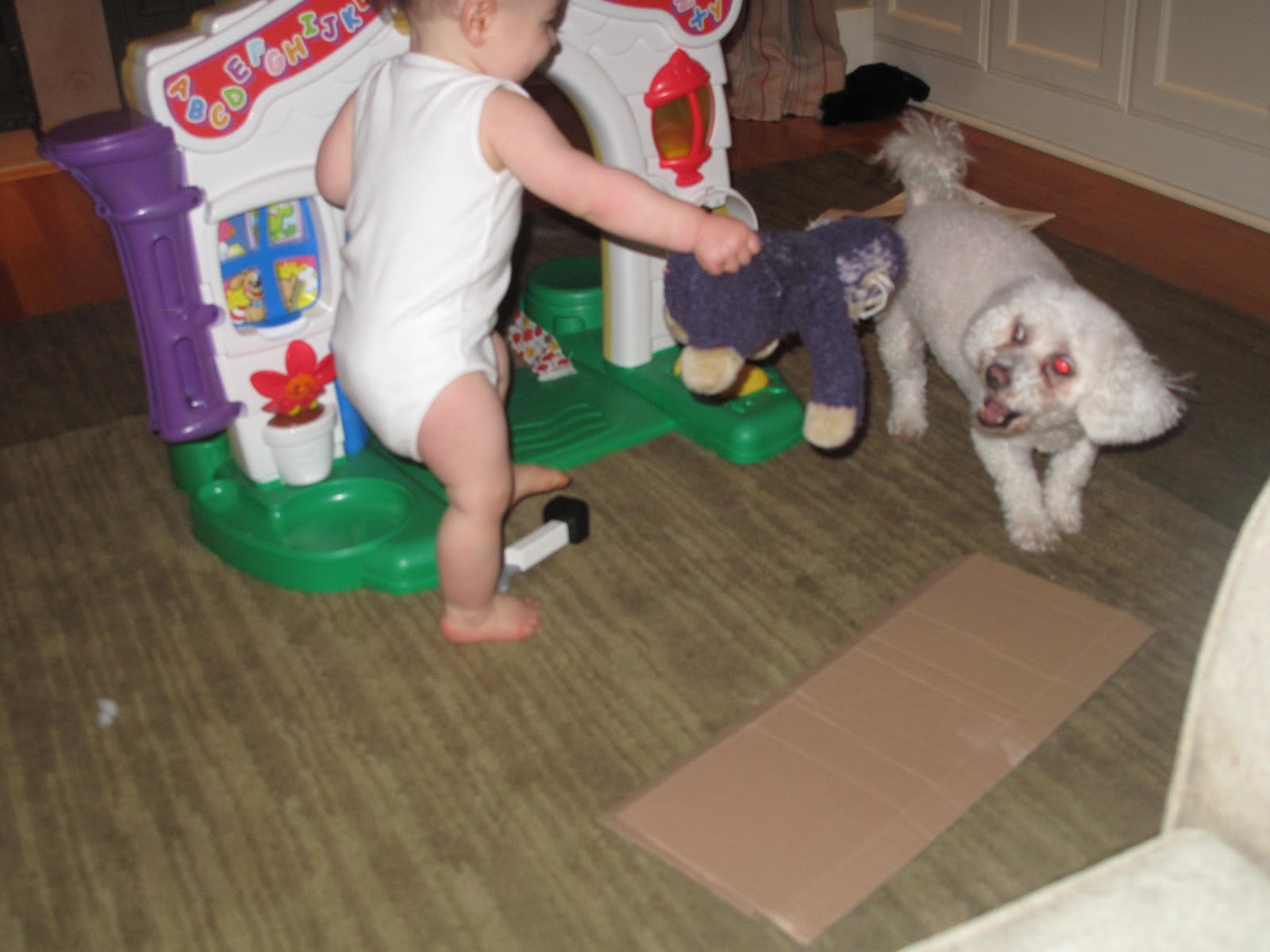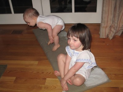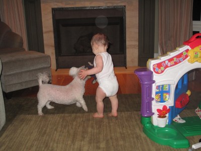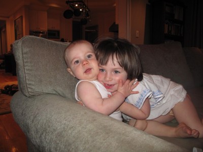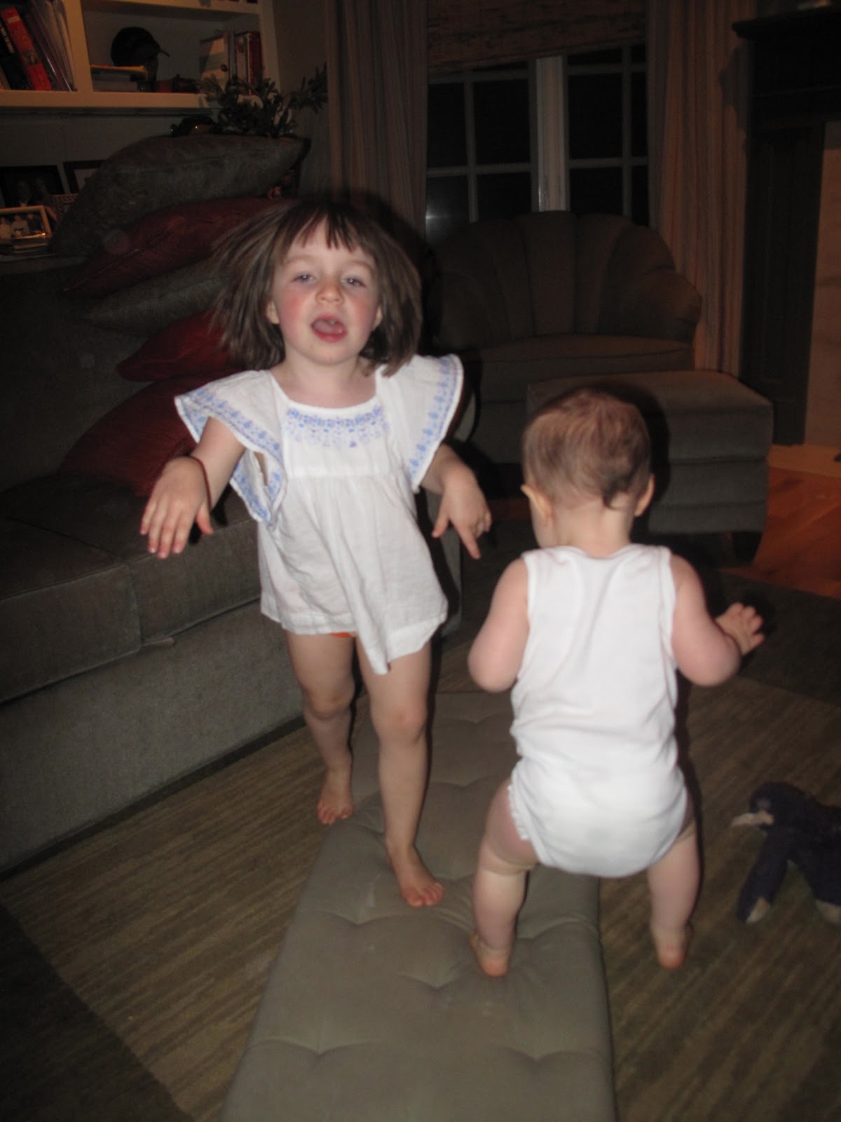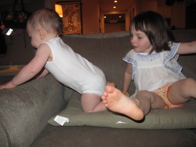These two seem to be getting to the age where they have started to amuse each other. On this night, they thought it was hilarious to run around after each other and Maggie, jump on the couch, and take Ollie on a ride. Its really fun to watch them develop a new kind of relationship! The laughing and directions from Lily to Oliver are pretty great, too.