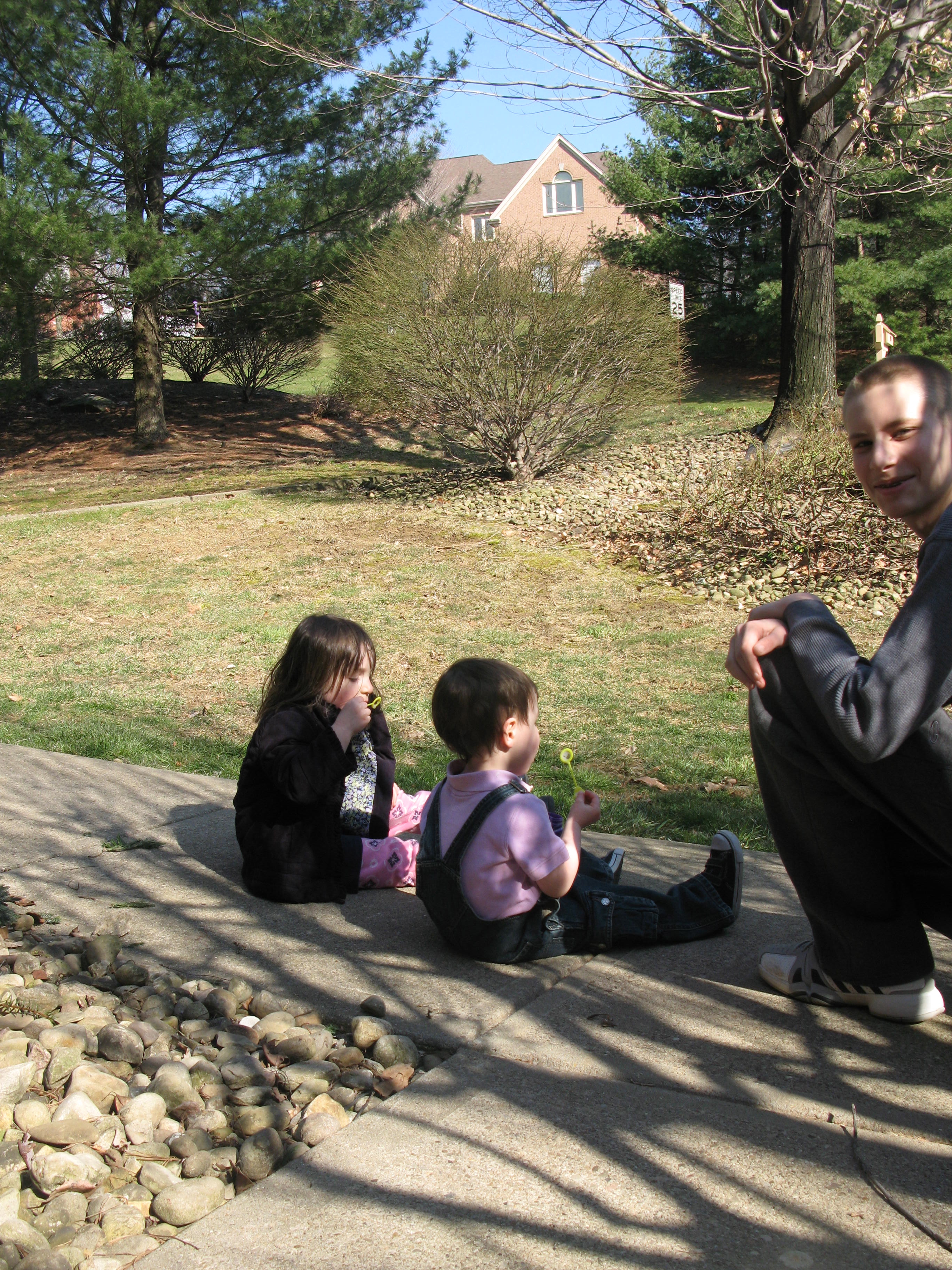 We are playing with neighbors today. It is sunny and wonderful and Sunday afternoon so everyone is outside. Lily just told Danny that they were going on a date. I asked her what a date is. Her reply:
