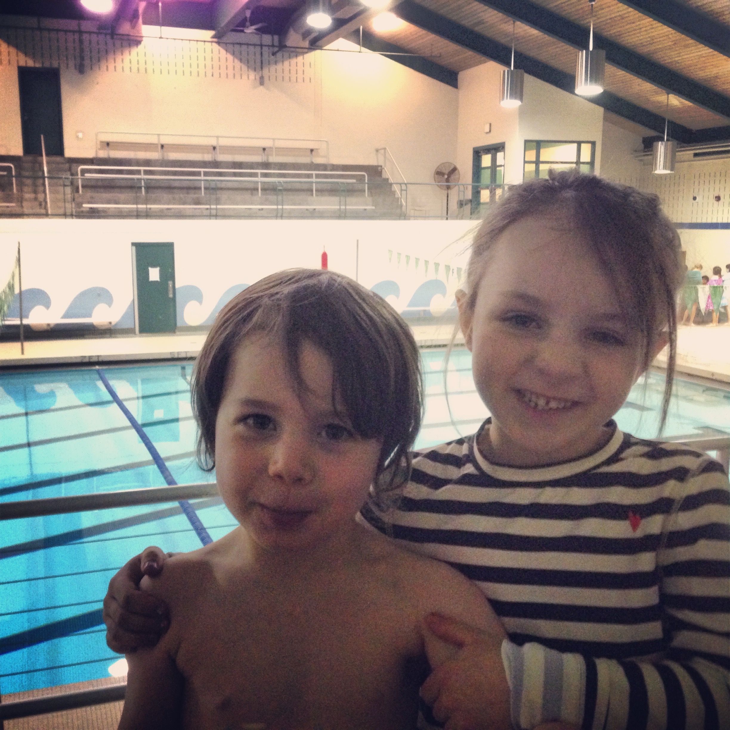 About a year ago we started swim lessons–and then stopped because the pool was too cold. I waited (im)patiently for Goldfish Swim School to open so my little swimmers could enjoy the 90* water. Today our patience and L’s persistence paid off! She is SWIMMING! Her instructor asked, “Who is this girl?!?” It was a thrill to see it happen! I am just so proud of her. She was pumped up and didn’t want to stop when her lesson was through. She asked to go to Family Swim over the weekend. And she hopes she can take one of her make up lessons {tomorrow, please!}. It reminds me of when you fall in love and just want to hang out with that new person and figure them out. She has conquered a new skill and wants to make it hers!