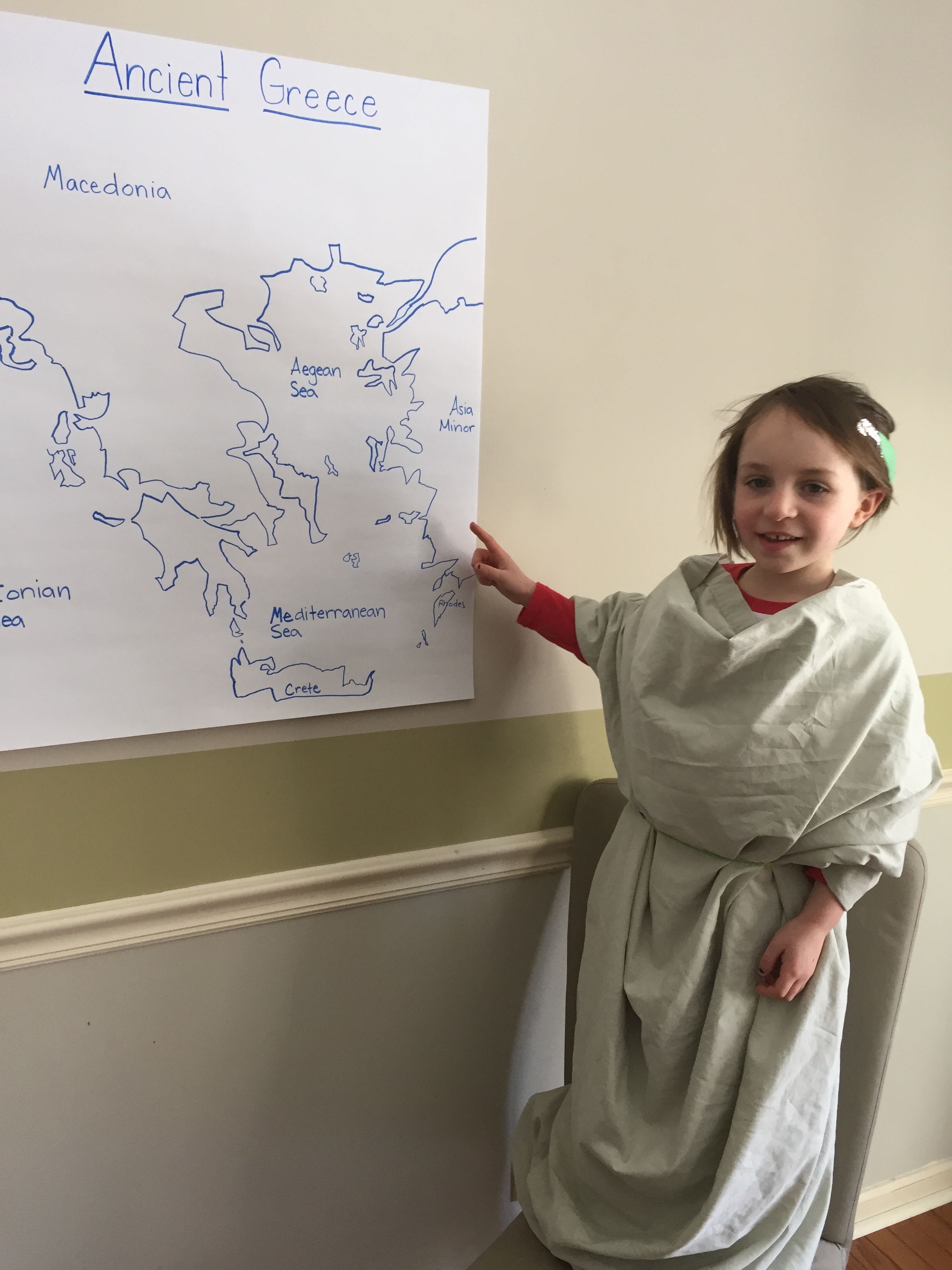 IMG_3355Lily noticed from her reading this morning that many Greeks wore things on their heads and so we made a laurel wreath.