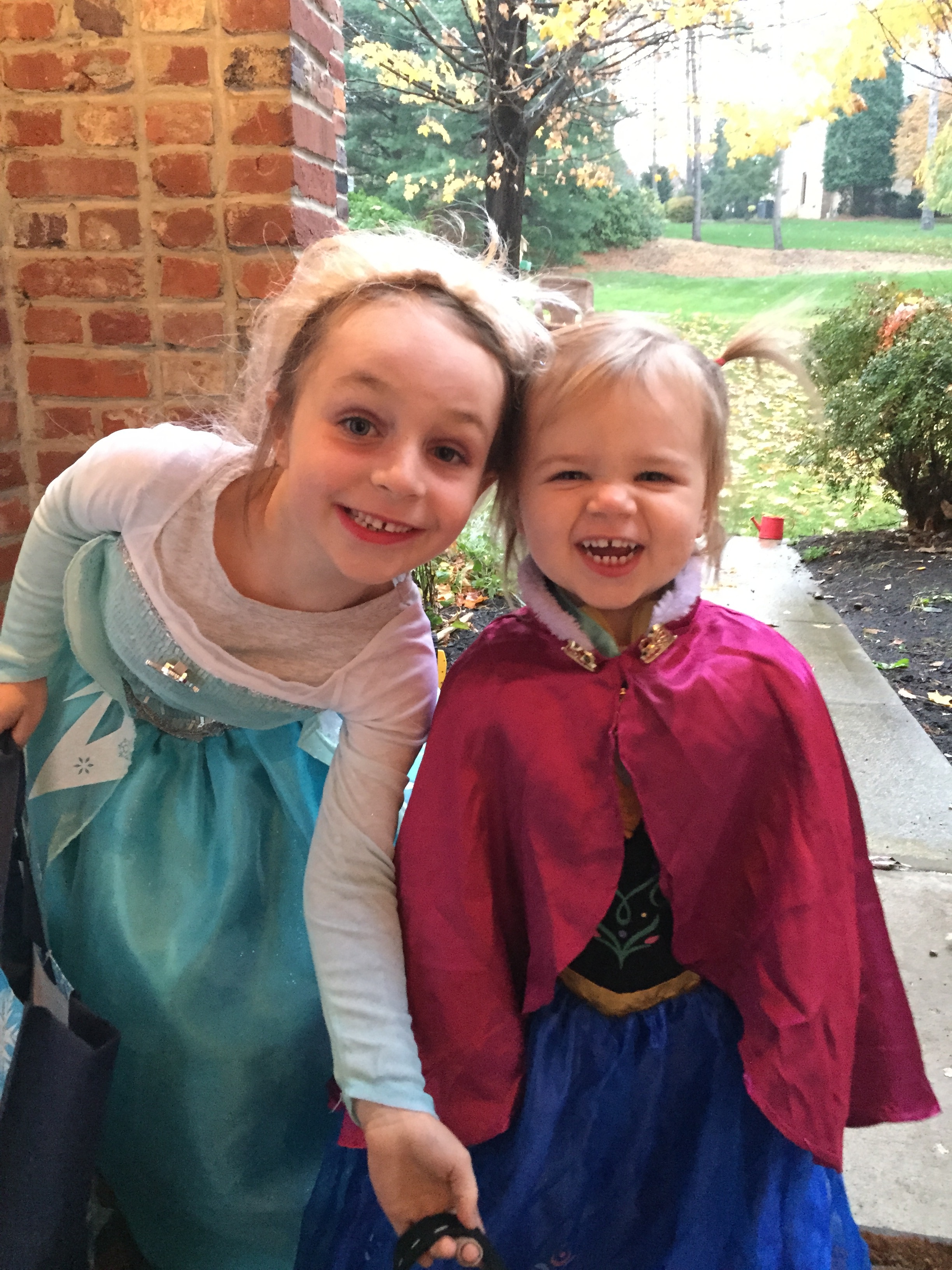 Before breakfast, she climbed her gate, crawling into bed with me at 5, slept until 6:15 when she decided it was time to go downstairs, poured her cheerios all over the floor into a bowl, demanding milk.  After breakfast, she wanted to put on her own clothes, especially her socks and shoes, as well as nail polish that Lily left within reach.  On our way to co-op, she echoed the narrator of Little House.  While in the nursery, she told everyone she needed to use the potty and did so successfully.  She took off her shoes and socks and chewed on one so it couldn’t be worn the rest of the time. At nap time, though she appeared to be sleepy, when I checked on her, she was locked in my bathroom.  In my bathroom, she smeared my face cream on herself and a shelf, tried a Tums, cut her hair, and put mascara on her eyebrow.  After her nap, she absconded with a chocolate granola bar and ate it all, privately, and let Lily make her into a baby vamp with face paint.   Now she is up in bed, sleeping.  It takes tremendous energy to be that busy and curious.