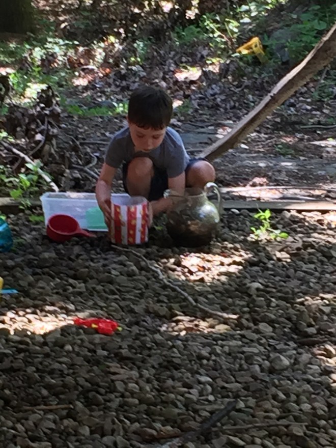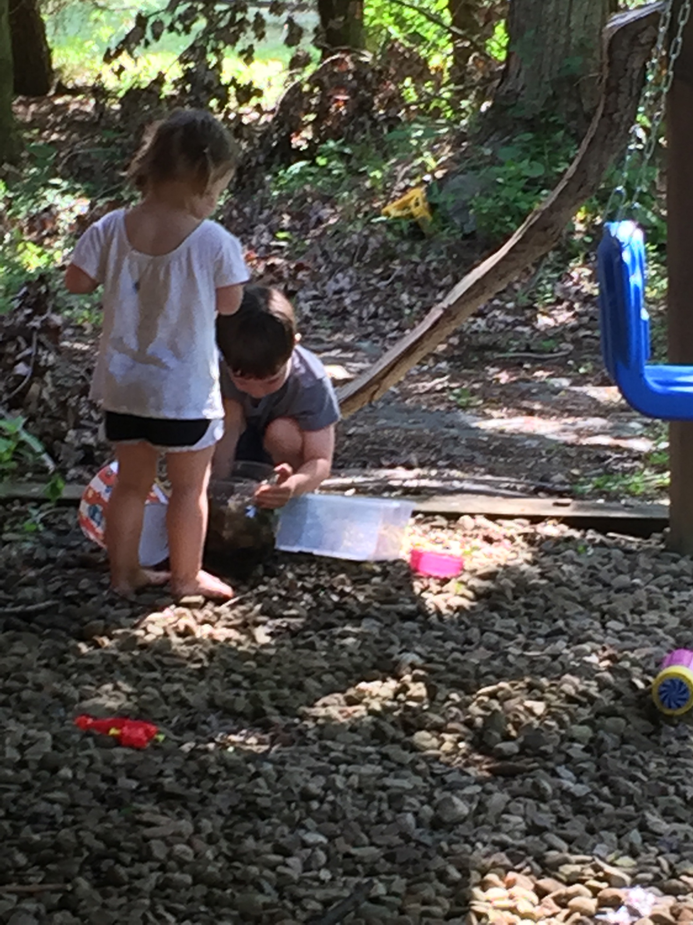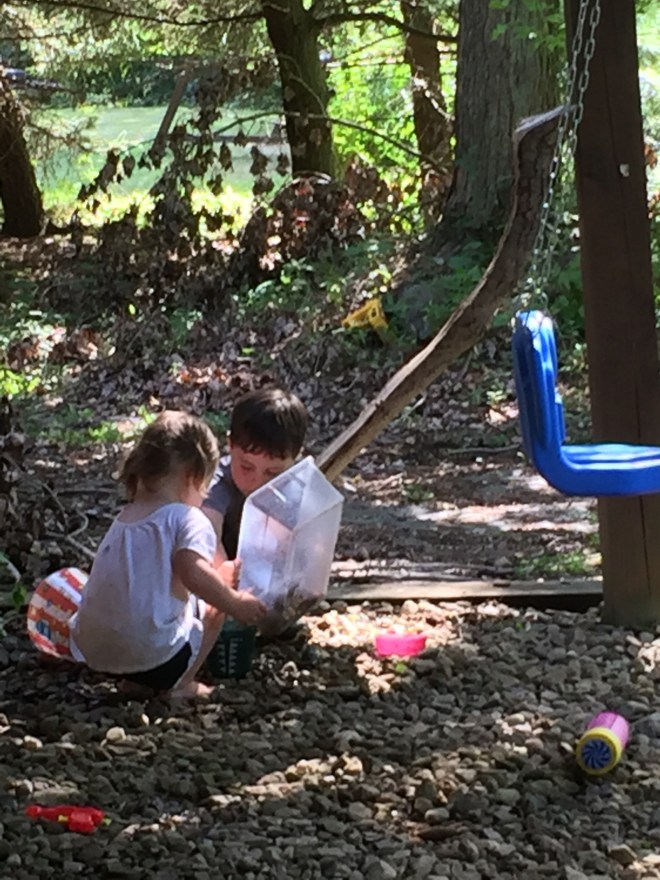 Emmy and Ollie played harmoniously this afternoon while Lily went to Landon’s to work on their clubhouse. While those two were down by the swings, I sat on the deck reading. For a very short time. After a few moments, Ollie called up, “Momma, we need a little company down here.” I didn’t refuse such a sweet request and joined them and caught a little bit of their play in photos: