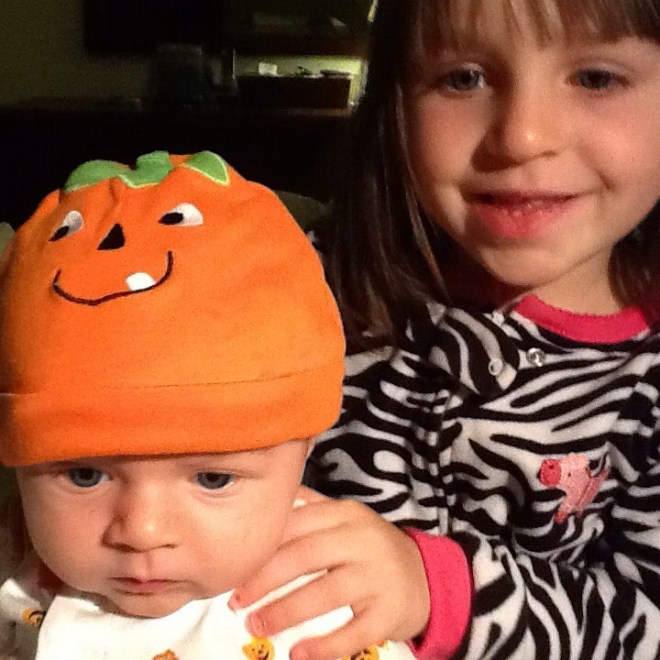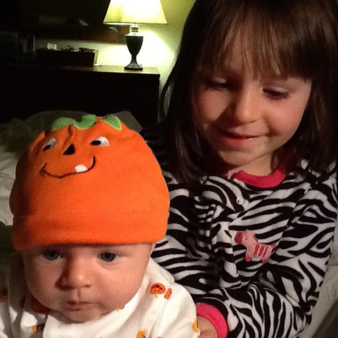 This was a few years ago…but today we had a gorgeous fall day to enjoy a hayride to the corn maze and pumpkin patch. I didn’t get many pictures. (Even so, it really did happen!) I will just have to remember the garnet and green leaves, the skeleton guarding the fence, Ollie’s enthusiasm in the maze, Emmy finding a wooly bear, Lily’s perfect pumpkin find and Sam bumping along in the hay. Spartan apples, too…crunchy and a little tart.