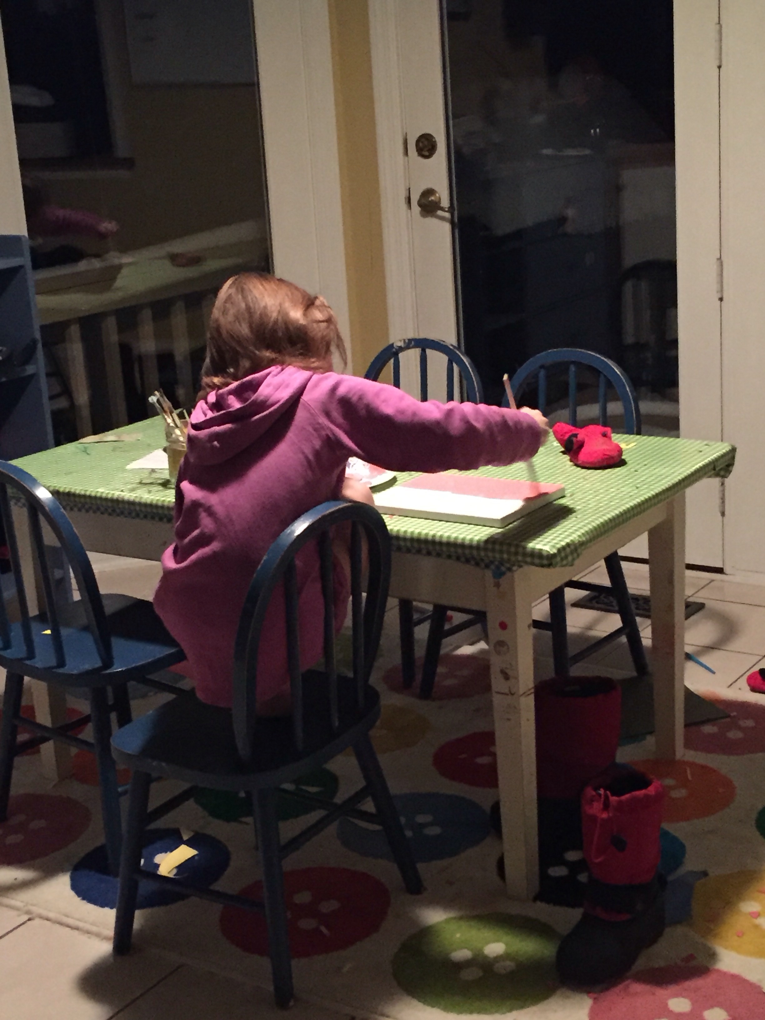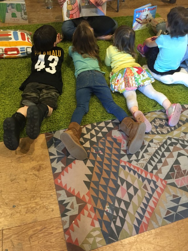 Seems everyone is getting to sleep later and later recently and it is throwing my daily habit here for a loop. By 8:30 my brain is not working well or up for inspired writing. I may have to revise my routine and perhaps change the time I do it. Maybe post in the morning–knowing I could be interrupted at any moment? All I do know is I need to be still this weekend; while it appeared to be a relatively quiet week, I think I’ve tried to do too much. Tomorrow will be waffles, teatime, wrapping up our weather unit, cleaning rooms and swimming with some downtime for all…this weekend, hopefully quiet and reading. Ommm-namaste (Ollie and Emmy didn’t do yoga at school today-they did snowga!)