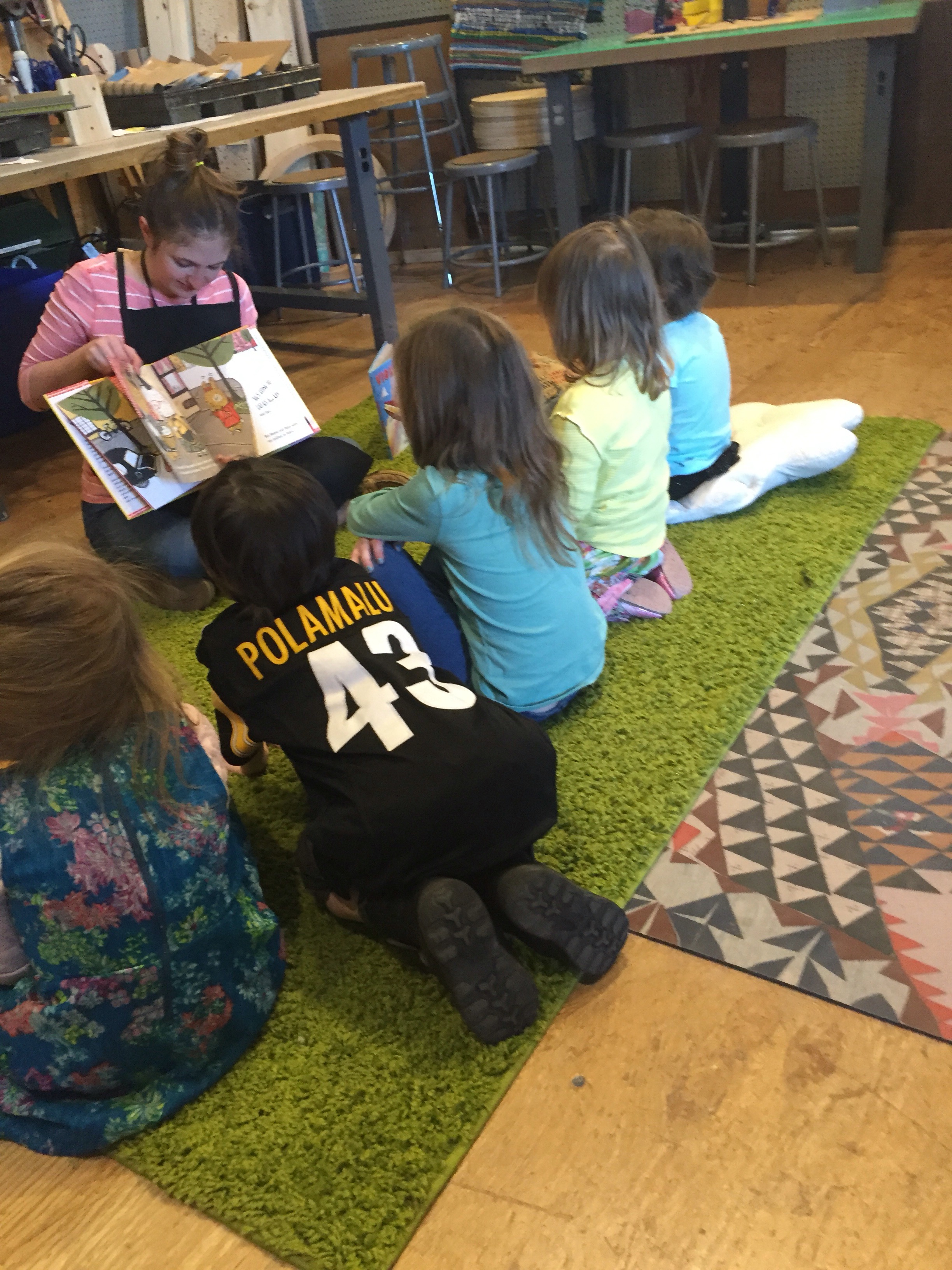 At 10:05 AM when I am being read to, a favorite by Jan Ba-rett {Brett}, with Nicki and his white mittens.
