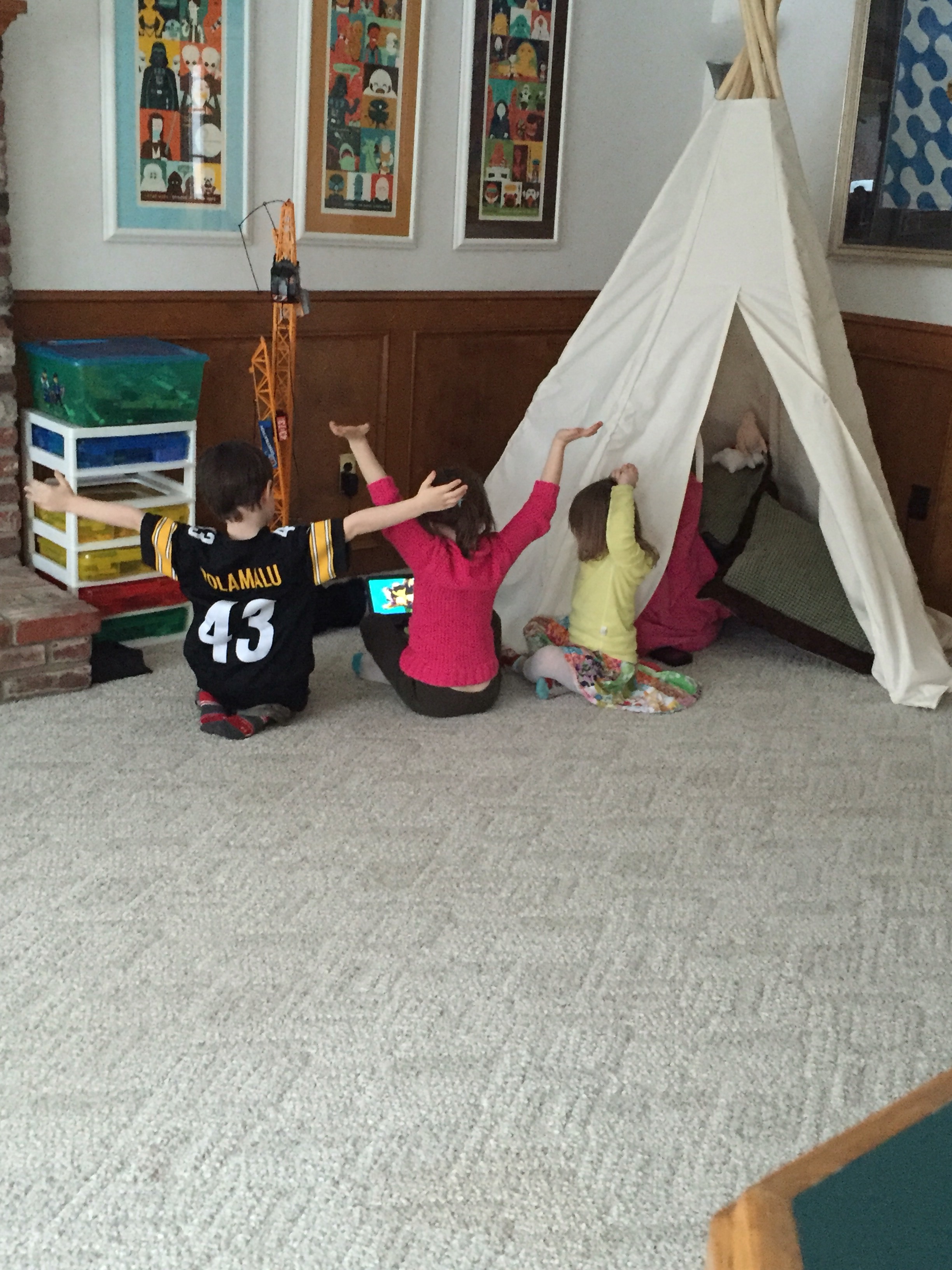 Seems everyone is getting to sleep later and later recently and it is throwing my daily habit here for a loop. By 8:30 my brain is not working well or up for inspired writing. I may have to revise my routine and perhaps change the time I do it. Maybe post in the morning–knowing I could be interrupted at any moment? All I do know is I need to be still this weekend; while it appeared to be a relatively quiet week, I think I’ve tried to do too much. Tomorrow will be waffles, teatime, wrapping up our weather unit, cleaning rooms and swimming with some downtime for all…this weekend, hopefully quiet and reading. Ommm-namaste (Ollie and Emmy didn’t do yoga at school today-they did snowga!)