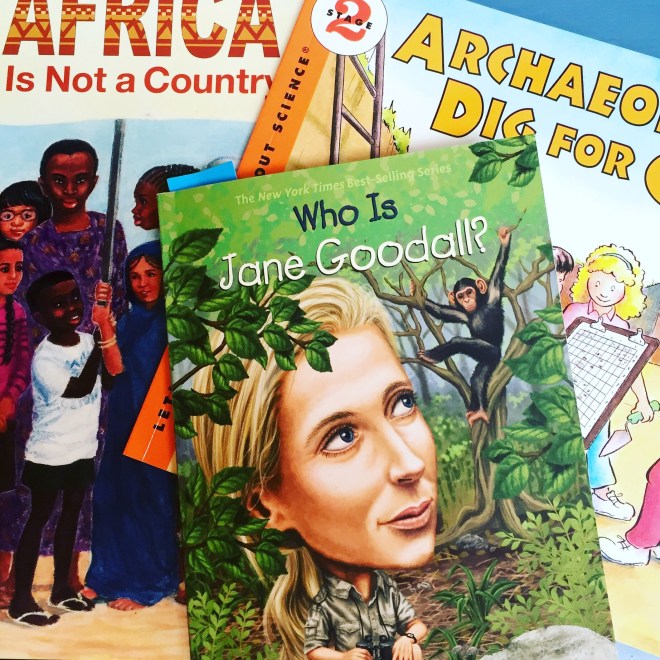 When Ollie joins us for school, we will have so much fun! He was home sick but on the road to recovery today and we did our regular lessons. Thank goodness we are studying Africa, it’s biomes and animals and Jane Goodall. He had a lot to tell us about the animal life!