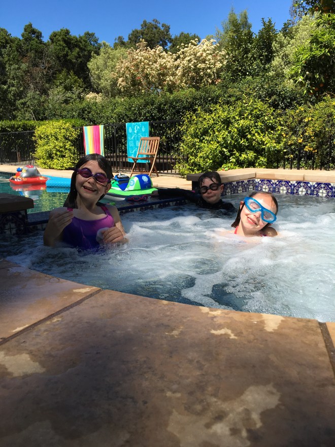 We met some new friends today. Lila and I met online in a homeschool group and we watch each other Periscope. When we realized she is in CA and I would be here, we decided to get together. And today was the day!  While we planned to possibly go to the beach, once the kids started swimming there was no stopping them.  What a fun day and how awesome to become with someone who lives 3000 miles away.