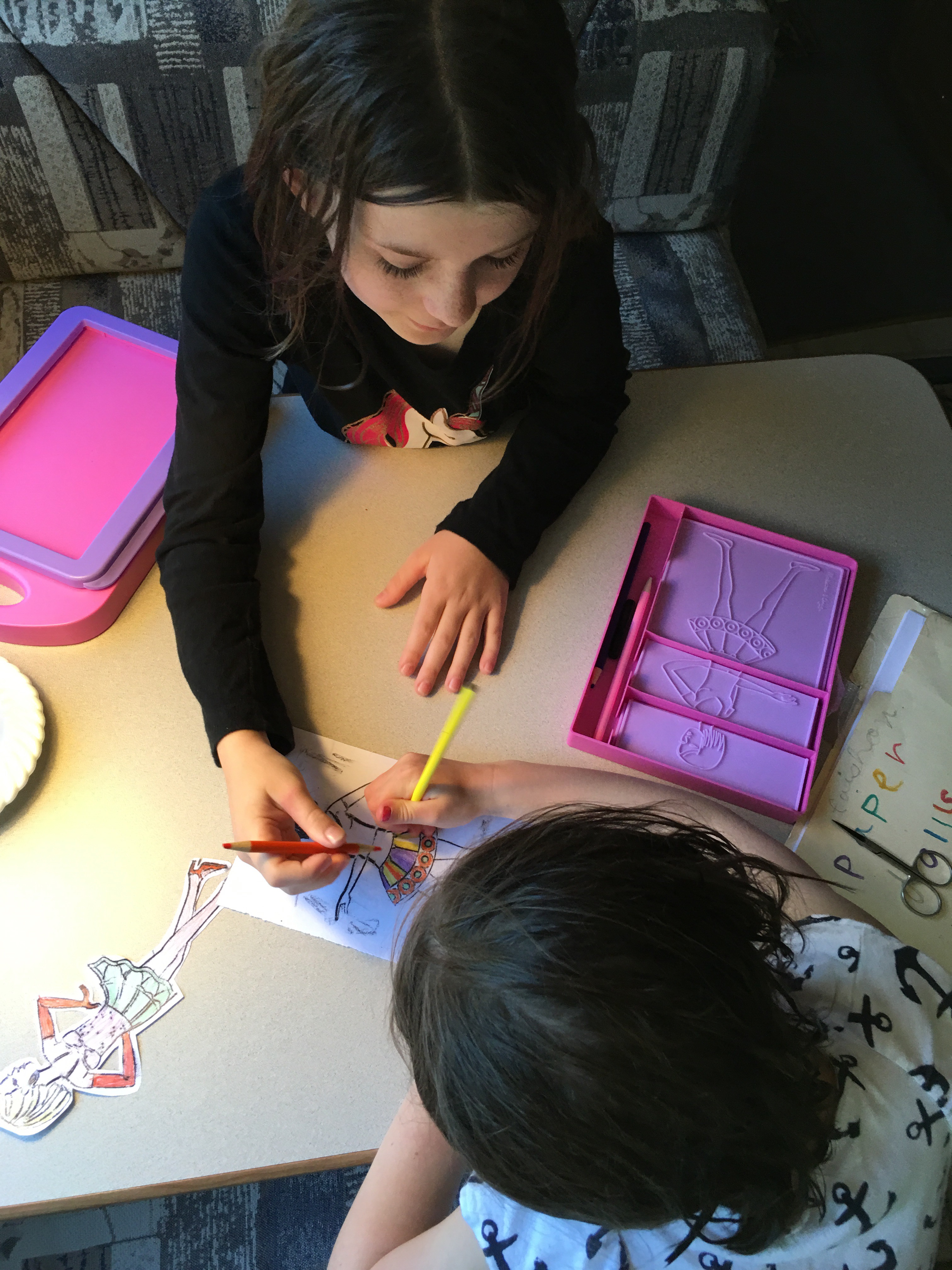 Or Zapped…either way, the sunshine gave us energy to play outside all day long. Everyone sat at the dinner table red-faced and slightly crispier than they were this morning.  Warm April days always seem hotter because the trees haven’t leafed out yet.  There were cries for sprinklers but none for popsicles, only because no one remembered where they are hidden.  The garage is cleaned and ready to set up messy science and art projects.  While I know the weather might change, the week made me so happy to be living in the springtime!  We started seeds on Friday.  Ollie has been diligent in his observation, looking for signs of change.  His peas have actually started to sprout.  Lily’s flowers and Emmy’s carrots and watermelon should be showing signs of green by the end of the week.  Lissa is visiting and brought along some cast-off goodies from a country club in Cleveland that is closing.  We have bags of money, drink order pads,  accounts payable checks and other various casino-like stuff.  If you visit, expect for Emmy to ask you what you want to drink and show you to your table.